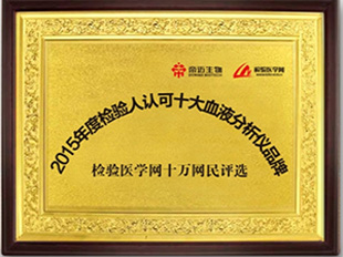 《2015年度检验人认可十大血液分析仪器品牌》检测医学网
