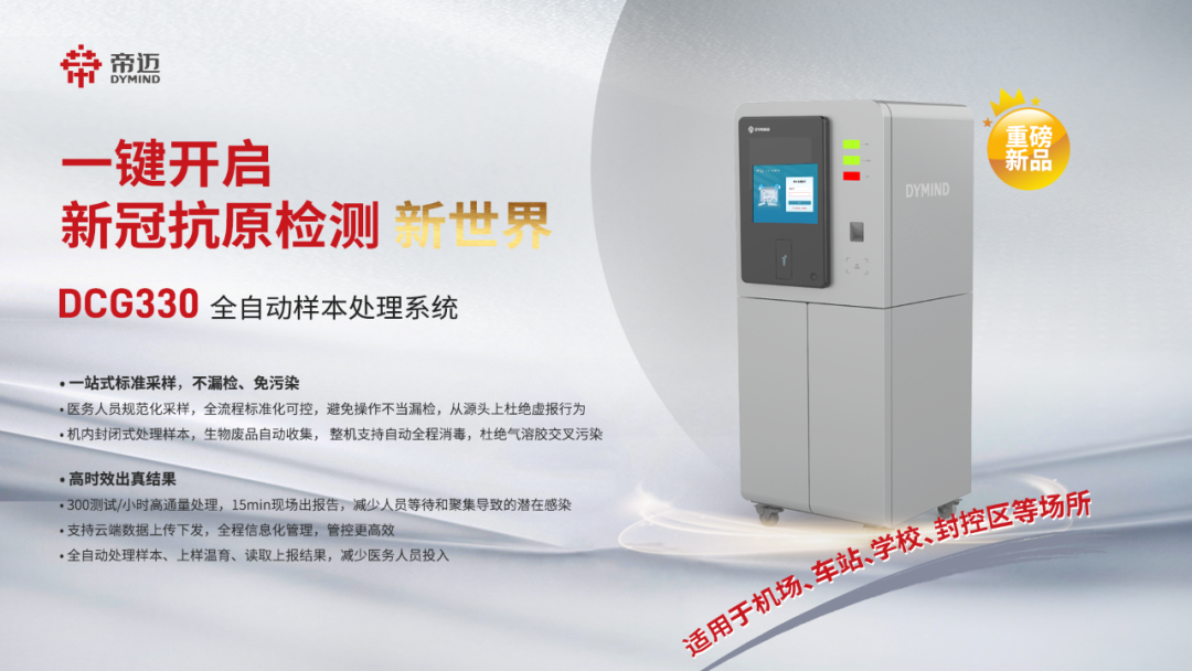 帝迈强势推出的新冠抗原批量检测解决方案——DCG330样本处理系统,一站式解决采样检测操作不规范、漏检虚报等问题。