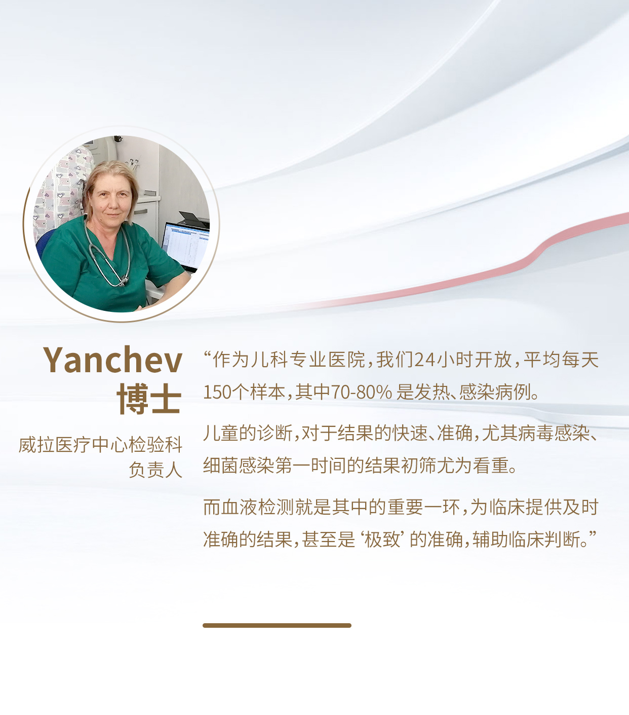 “2021年5月与帝迈合作后,我们引进了DM79X,实现了血常规、CRP、SAA的三联检。一台DM79X就可以完成血常规+CRP+SAA的检测,现在从抽血到出具结果只需要10分钟。” Yanchev博士提到,使用DM79X之后提高了病毒感染、细菌感染的初筛效率和准确性,对于后续的临床治疗提供了有力依据。