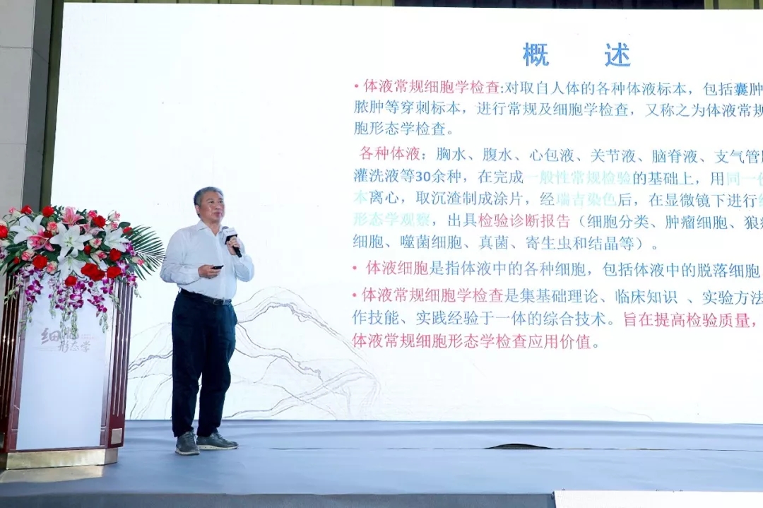 周教授详细阐释了体液细胞成分,涂片染色与镜检,有核细胞分类及细胞学报告等多个模块。同时也介绍了恶性肿瘤细胞的不规则形态,其胞体、胞质、胞核的形态特征可概况为“三大三千”。对于体液常规细胞学检查的技术要点,周教授娓娓道来,细致入微。