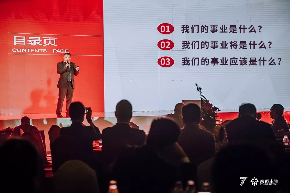 在年度总结及规划环节,帝迈生物总裁翟留伟先生致敬管理大师德鲁克,以德鲁克经典三问对2019年做出了深刻的总结,并提出2020年的愿景及发展目标。