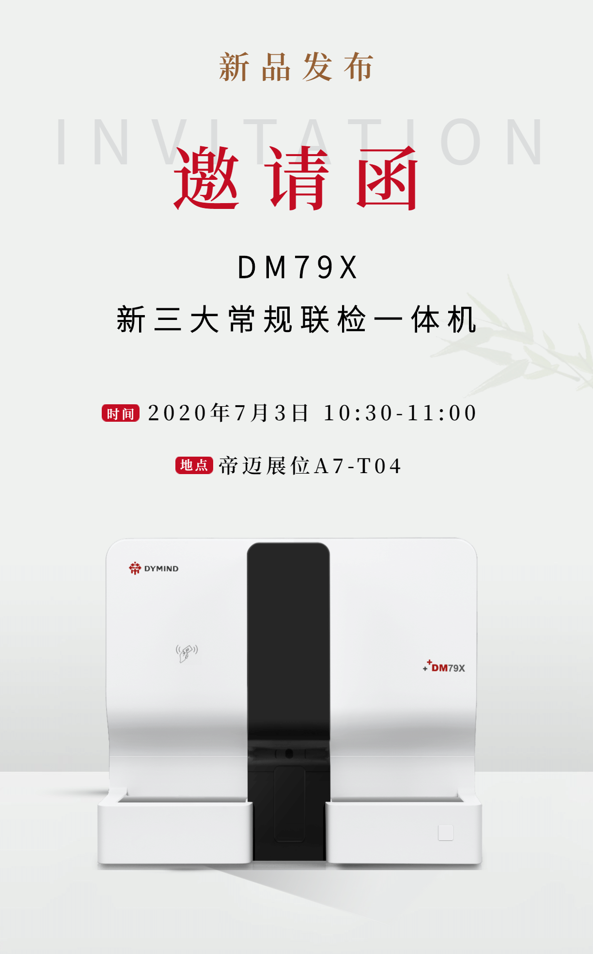 帝迈生物将携“新三大常规联检一体机DM79X”亮相2020 CACLP,坚持创新引领,简化检验流程,同时各品类血细胞分析仪悉数登场,以全新展台形象与现场精彩活动,与您分享行业领先的创新实践。